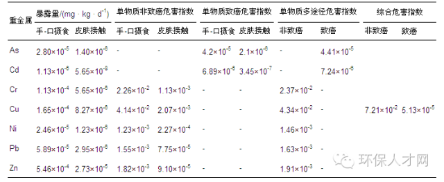 表9 儿童健康风险评价结果